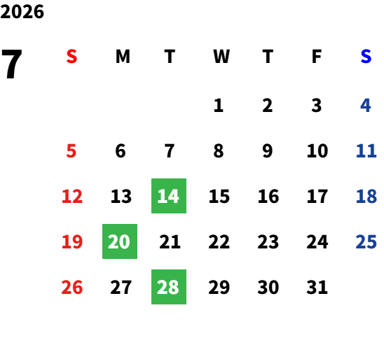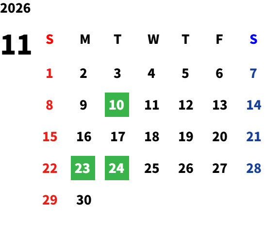 営業日カレンダー