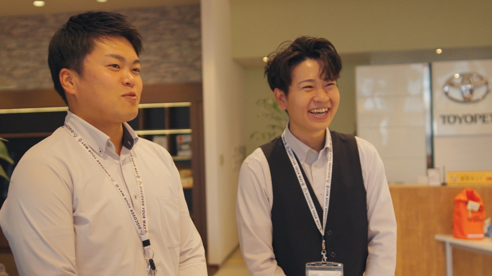 そうですね、営業関係はノルマがあると思っていると思うんですけど、そこに対してめちゃくちゃプレッシャーがあるわけではないので、ある意味伸び伸びと自分のペースで成長していける会社かなとは思うので、周りもすごい優しい方とか先輩方も多いので恵まれた環境で働くことはできるかなとは思います。愛媛トヨペットにぜひ来てください。