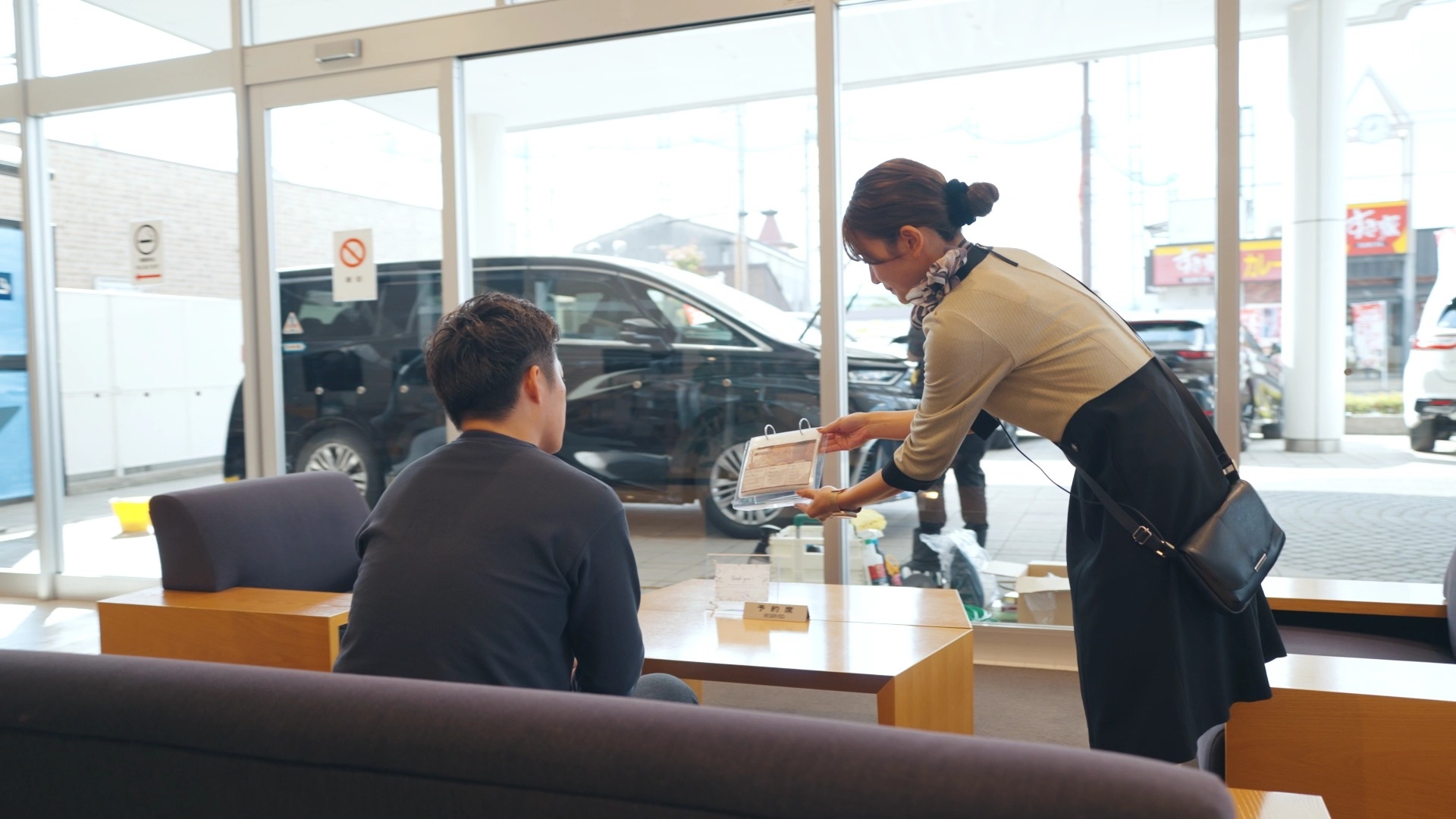 日野さん)あとは受付って、お出迎えして案内してというだけではなくて、例えば簡単な操作説明だったり、「車について分からないことがあったので来たんですけど…。」みたいなお客様もいらっしゃるので、そこでも私たちが力になれることがあると思っています。