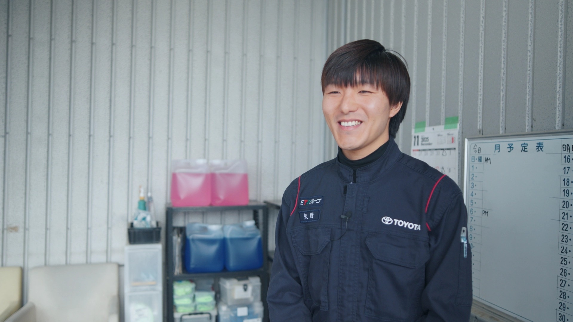 私自身は、元々自動車に興味があったわけではなかったんですけど、将来的に自動車産業は無くなるものではないと思うので、手に職をつけておくと安泰なのではないかということでこの仕事を選びました。