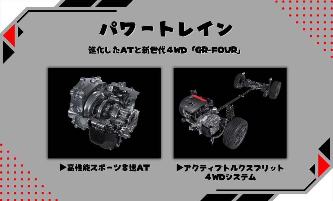 GRヤリスには、新開発の4WDシステム「GR-FOUR」が搭載されています。
