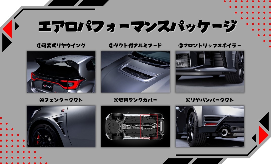 「エアロパフォーマンスパッケージ」は、GRヤリスのスポーツ性能とデザイン性をさらに引き上げる特別なオプションパッケージです✨
