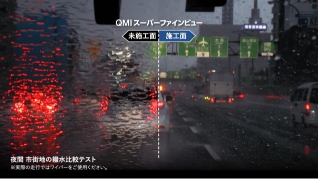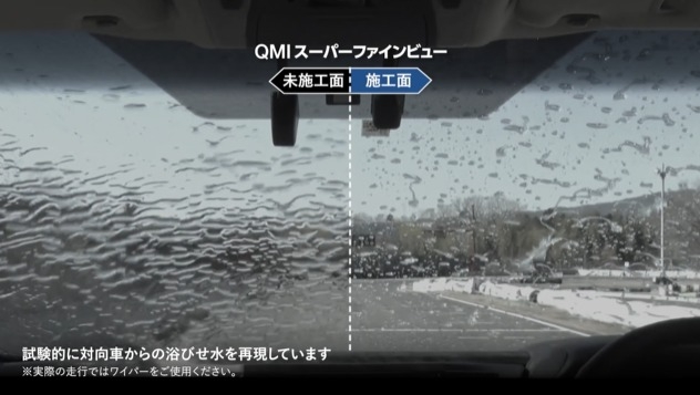 毎年のように発生する「ゲリラ豪雨」や、ワイパーだけでは対応しきれないような雨の時などに、QMI スーパーファインビューはしっかりと視界を確保してくれます!