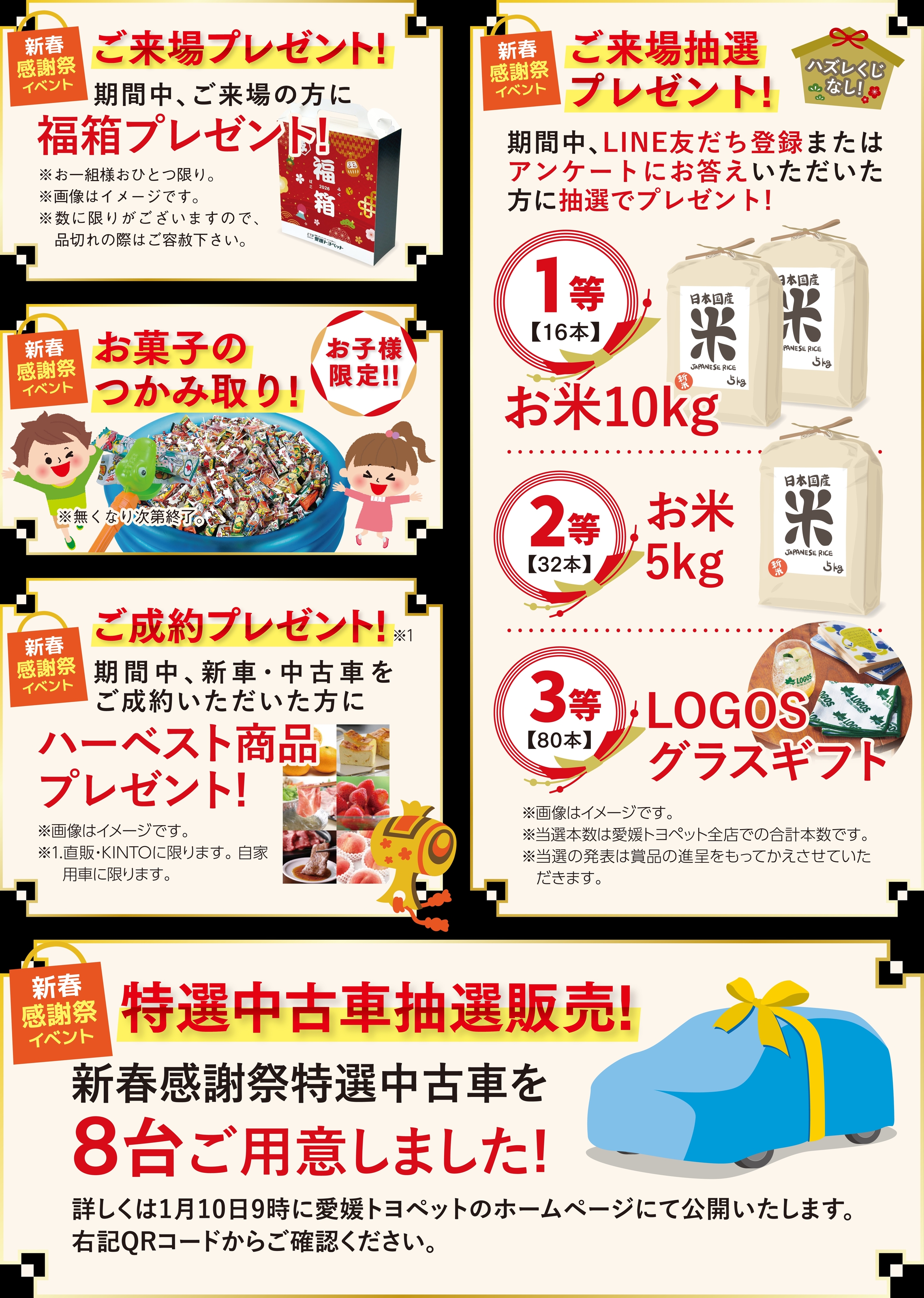 特選中古車を8台ご用意🚙詳しくは1月10日9時に愛媛トヨペットのホームページをご覧ください👀