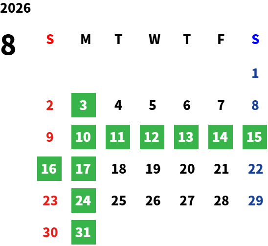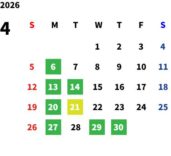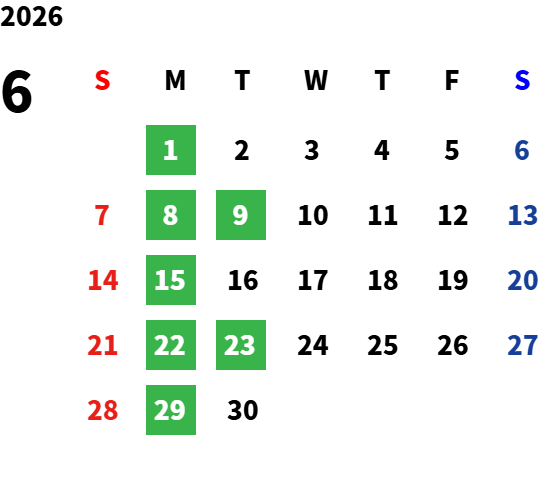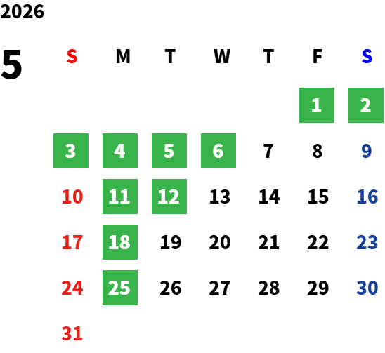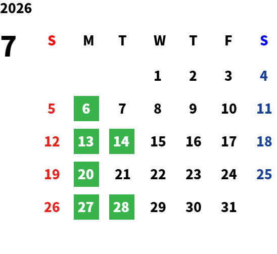 2026年4月より、月曜日・第2火曜日・第4火曜日(2・3・6・7・9・11月)・9/23を定休日とさせていただきます。