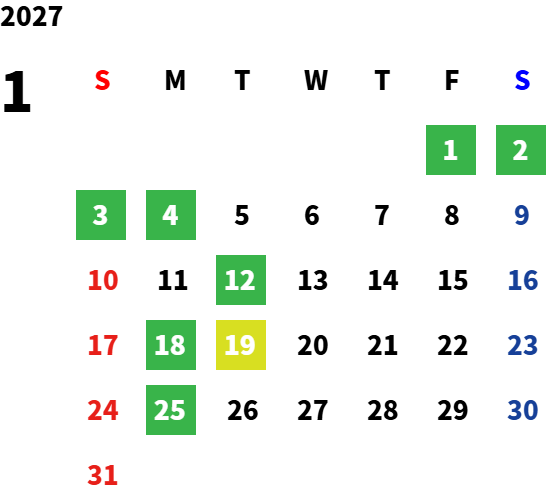 営業日カレンダー