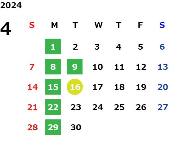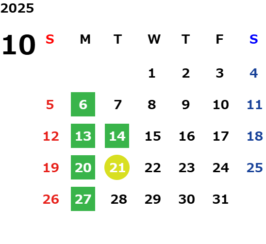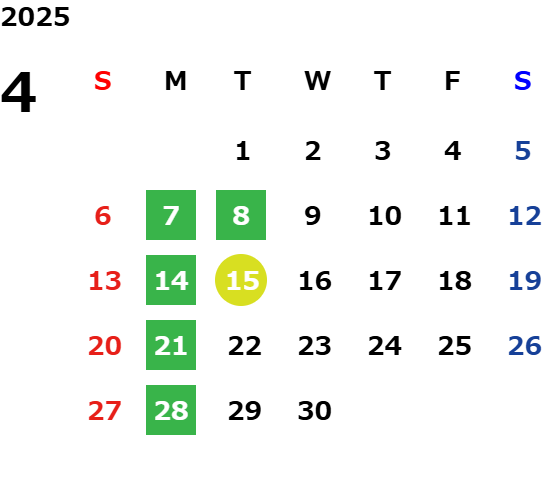 誠に勝手ながら2025年4月より、月曜日・第2火曜日の定休日に加えて、6月・7月・11月・2026年2月は、第4火曜日も定休日とさせていただきます。