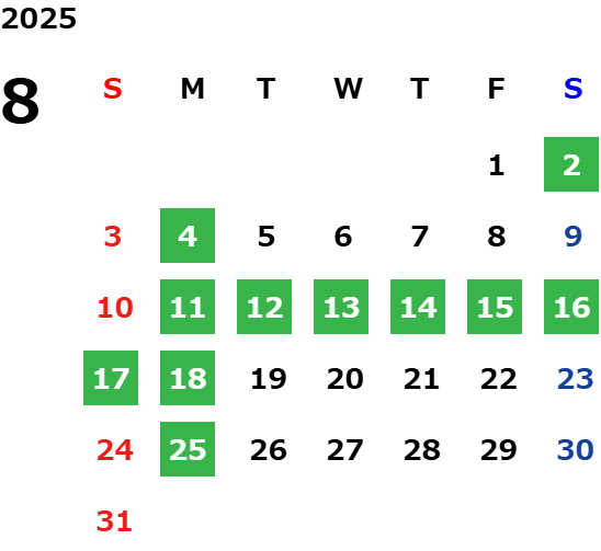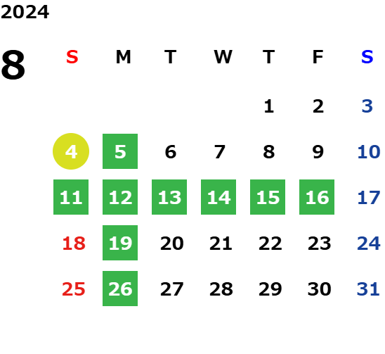 詳しくは営業カレンダーをご参照ください。8月2日はおんまくの為お休みさせていただきます。