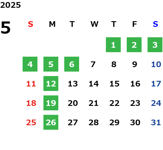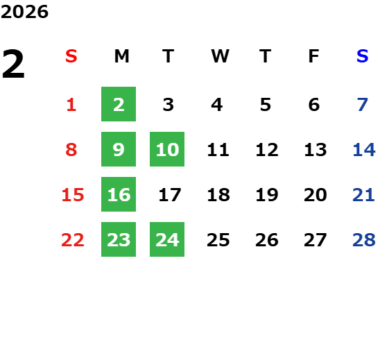 誠に勝手ながら2025年4月より、月曜日・第2火曜日の定休日に加えて、6月・7月・11月・2026年2月は、第4火曜日も定休日とさせていただきます。